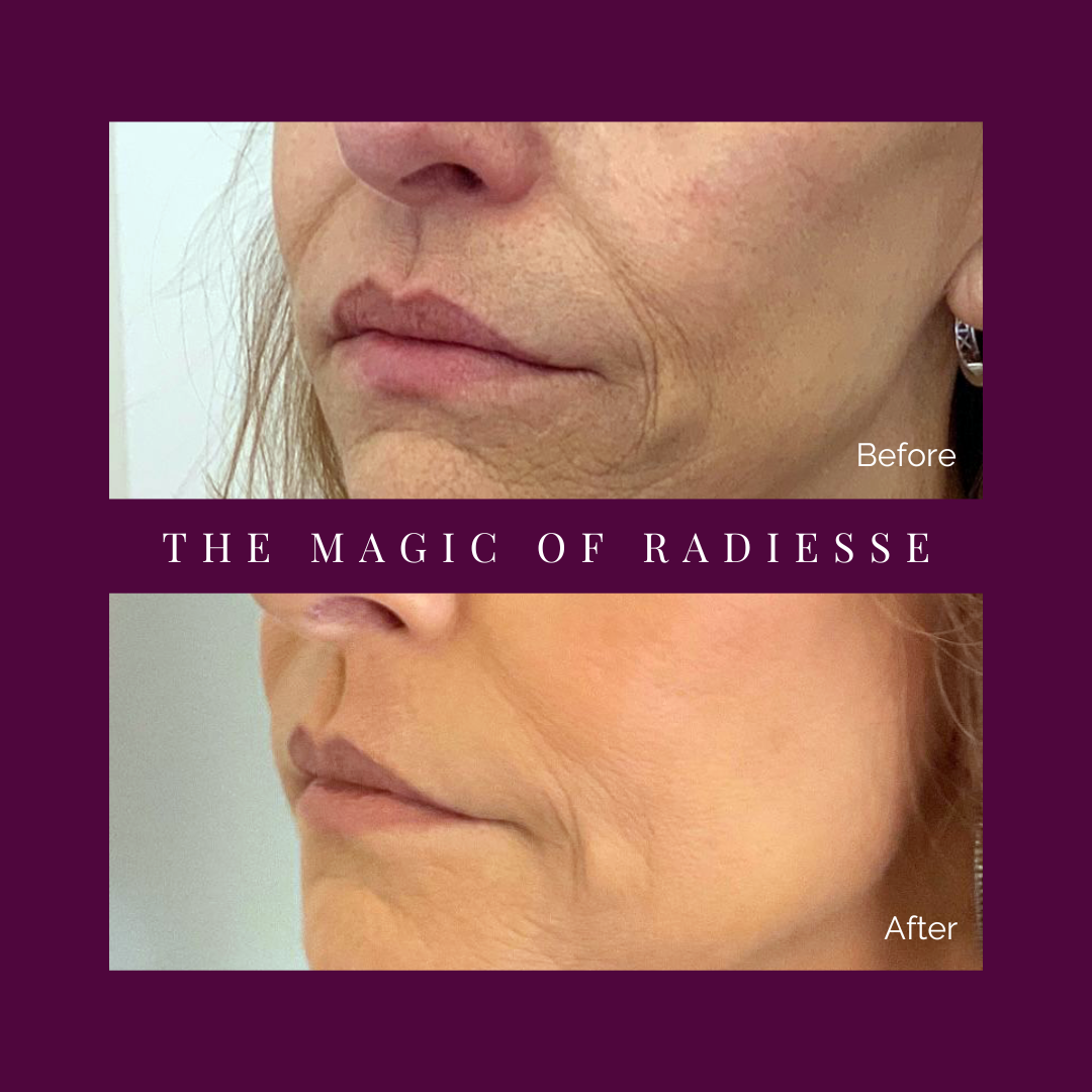 The Radiesse CaHA gel matrix immediately improves the appearance of the wrinkles following injection. When CaHA particles are incorporated into your skin, they create a "scaffold" that stimulates collagen and elastin production. As the gel carrier breaks down, collagen fibres form, smoothing lines and promoting renewed skin structure.